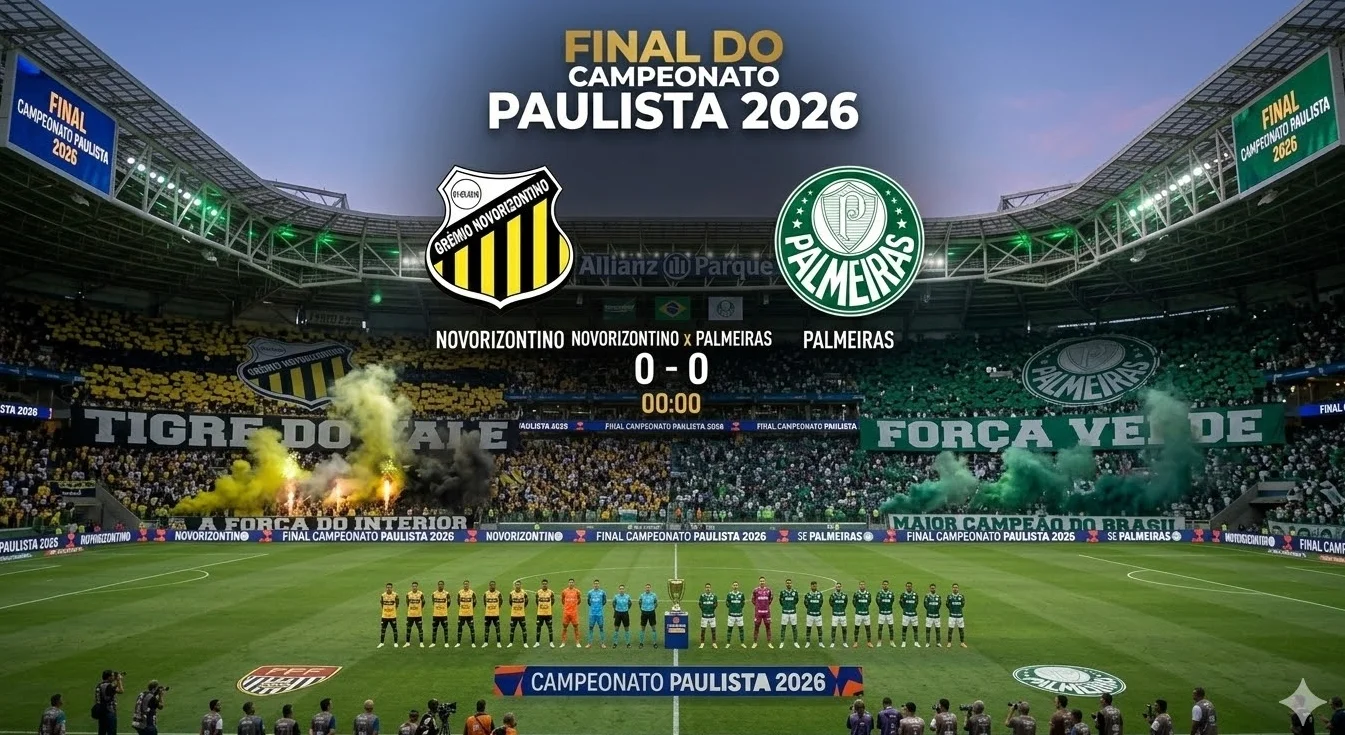 Novorizontino e Palmeiras se enfrentam neste domingo pela final do Campeonato Paulista 2026. Confira horário, transmissão e escalações prováveis.